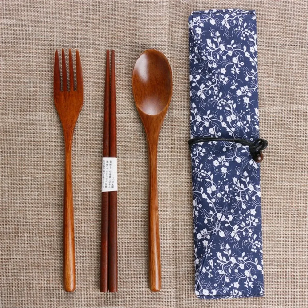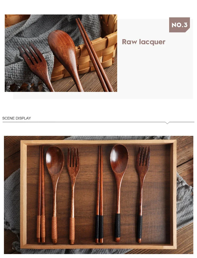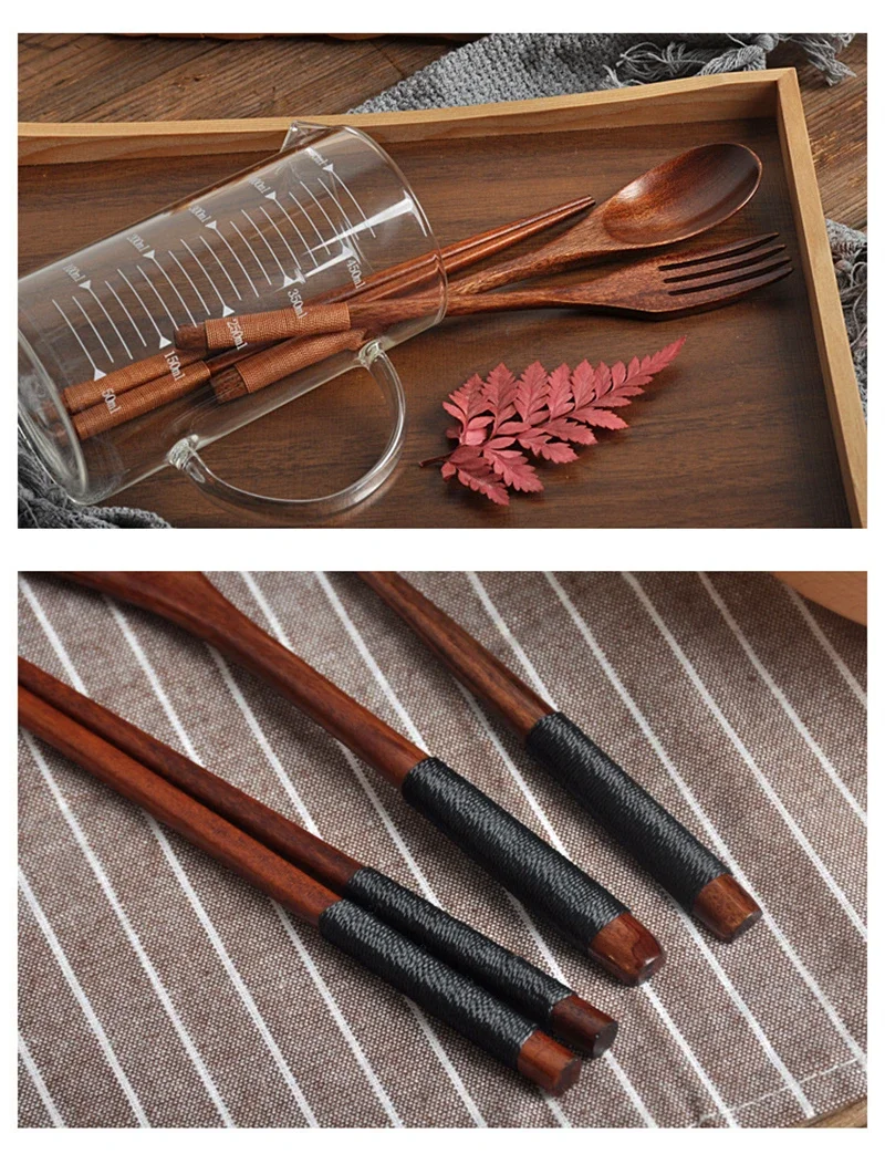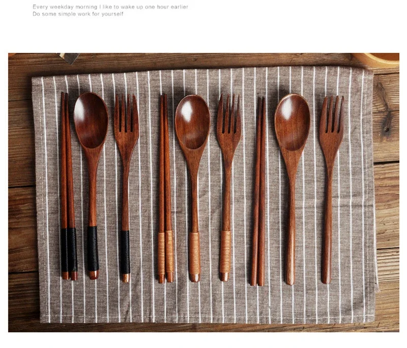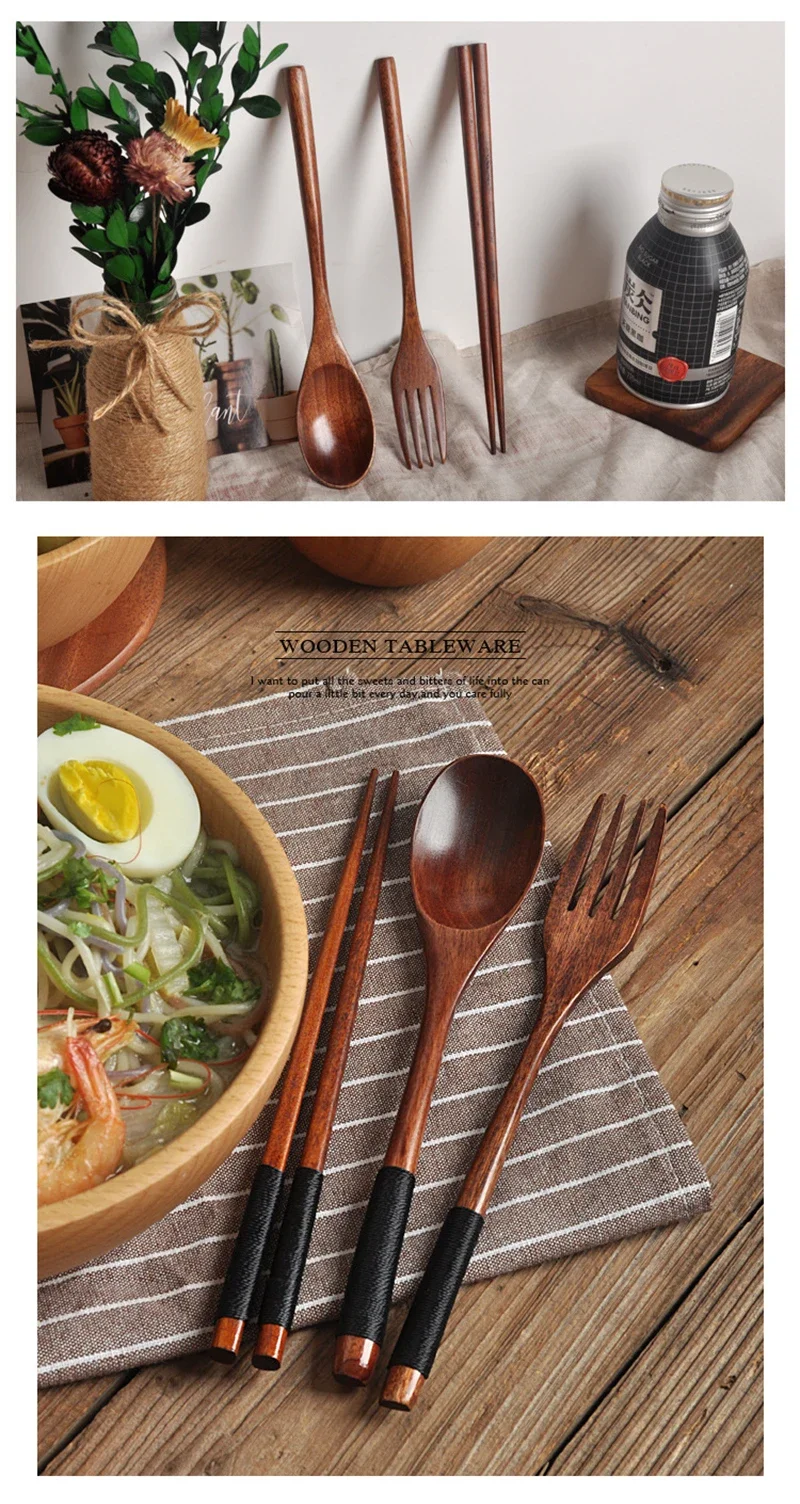 Wooden Cutlery Spoon Fork Chopsticks Dinnerware...